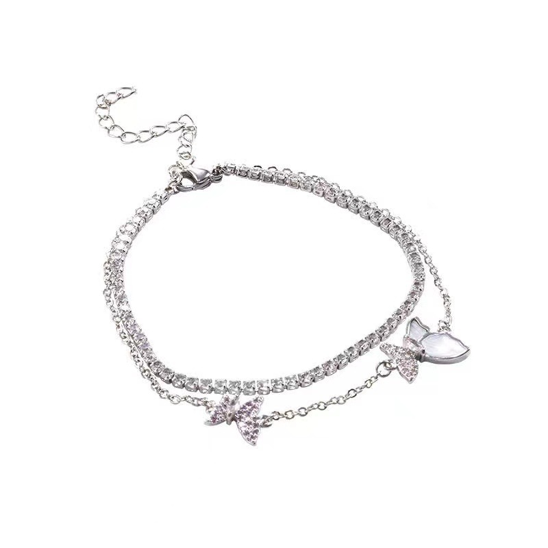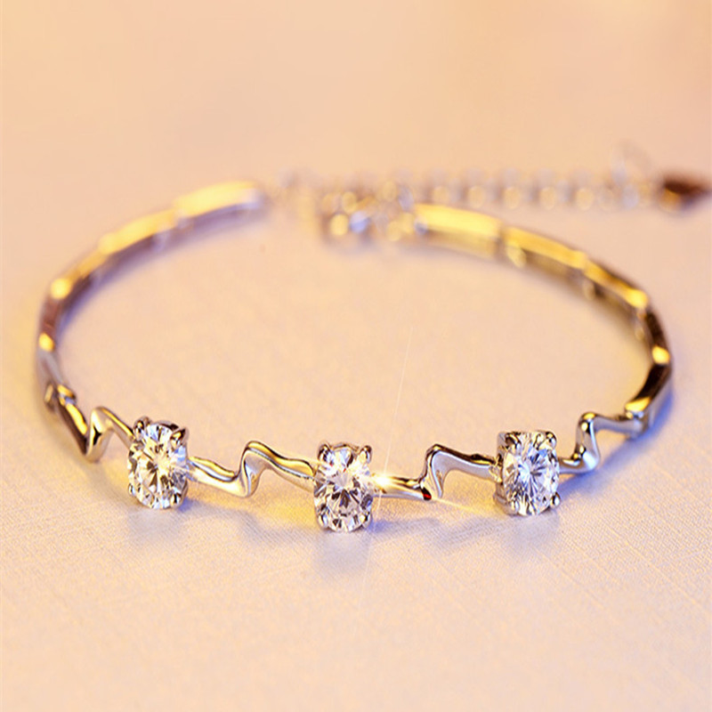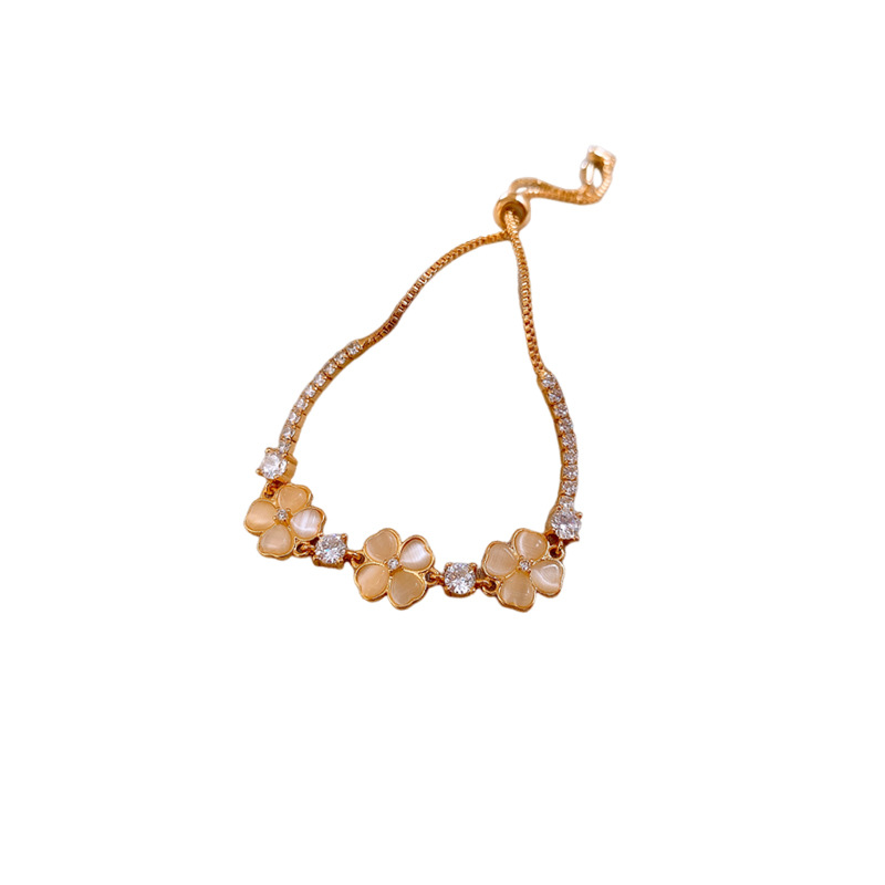 Flower shaped zircon and cat’s eye gemstone bracelet