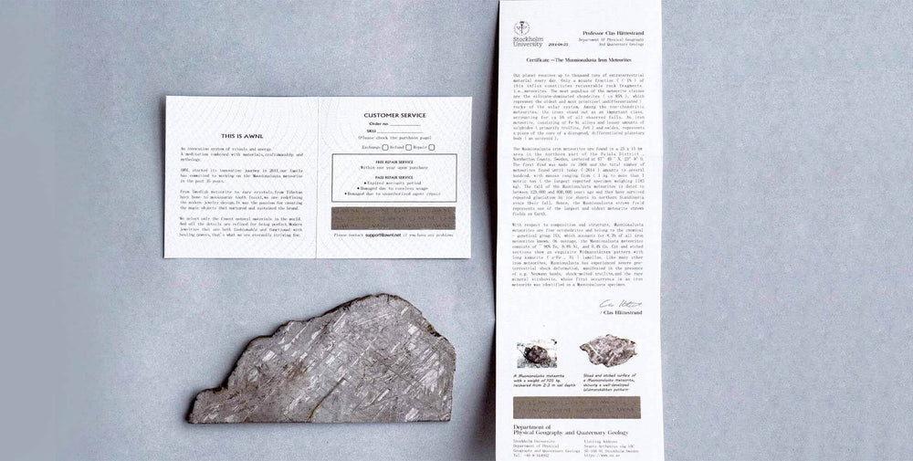 - Each piece comes with a warranty certificate; designs differ between non-meteorite and meteorite series, all containing authenticity codes