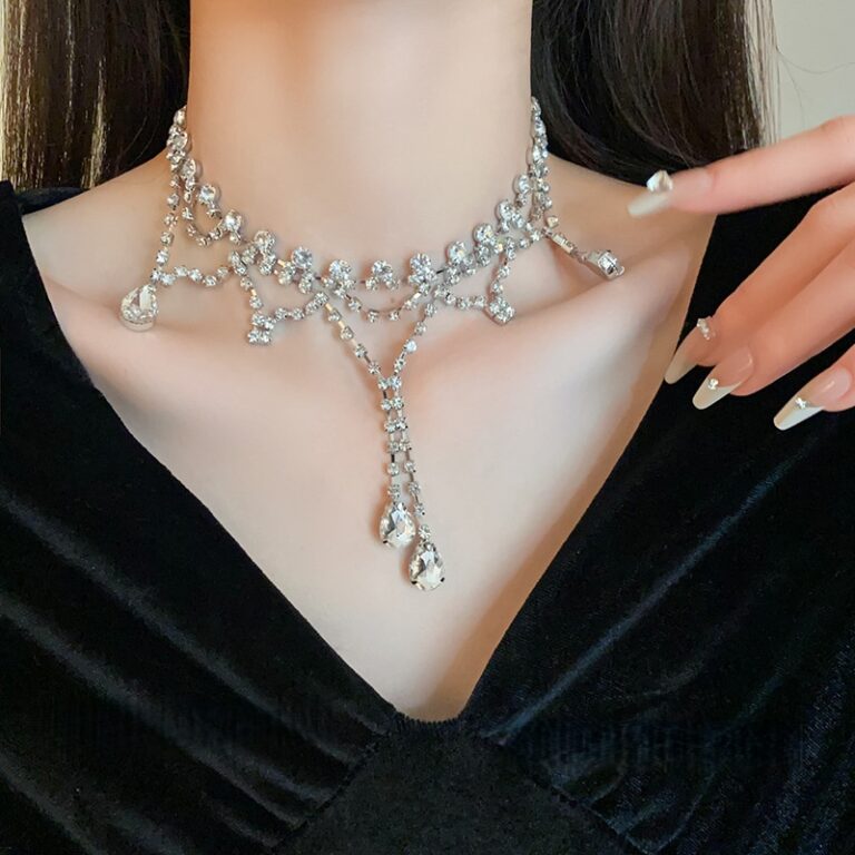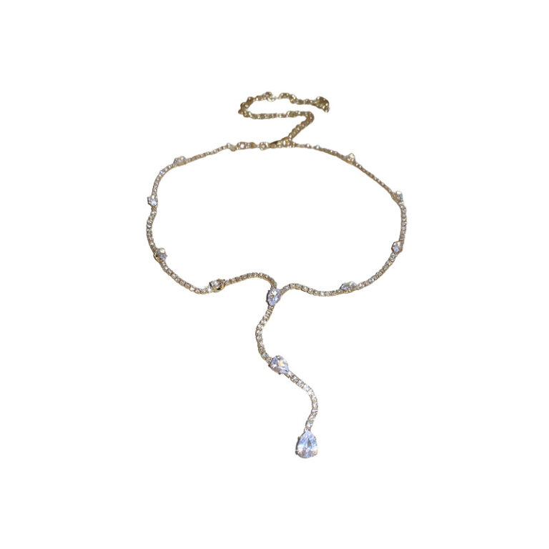 Diamond encrusted teardrop zircon tassel necklace