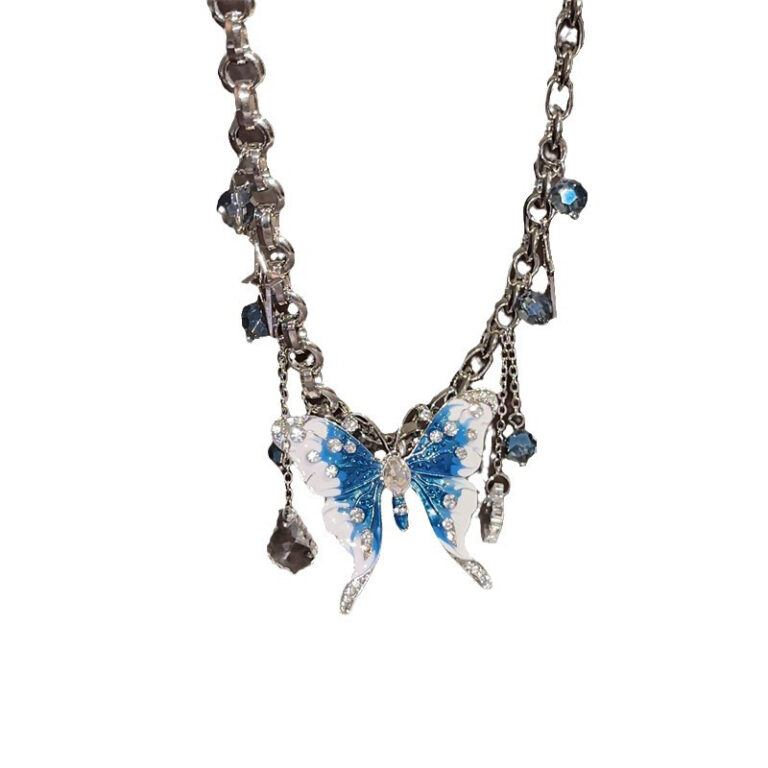 Blue enamel butterfly necklace
