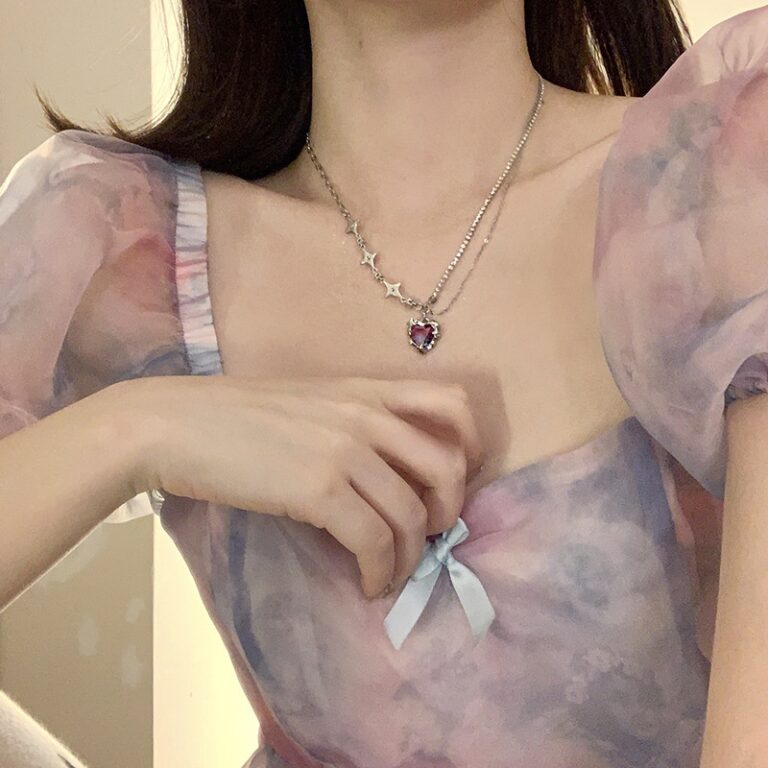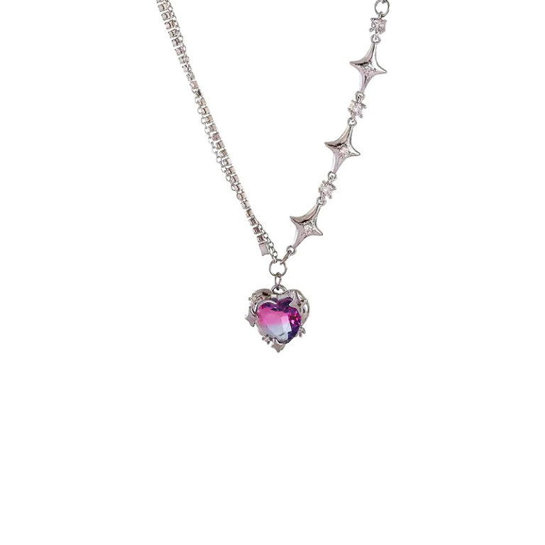 Purple heart shaped rhinestone sweet and cool necklace
