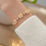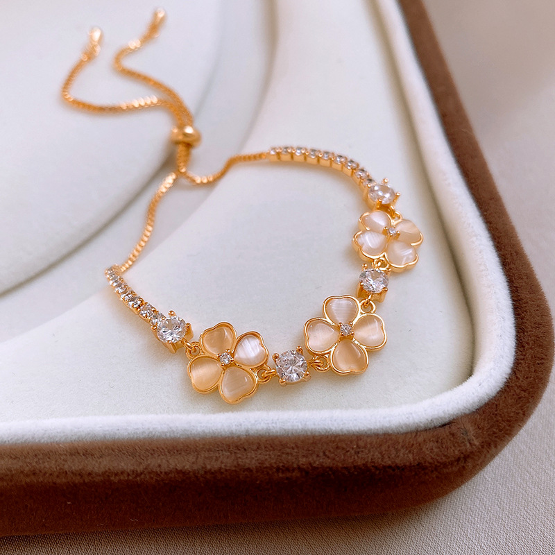 Flower shaped zircon and cat’s eye gemstone bracelet