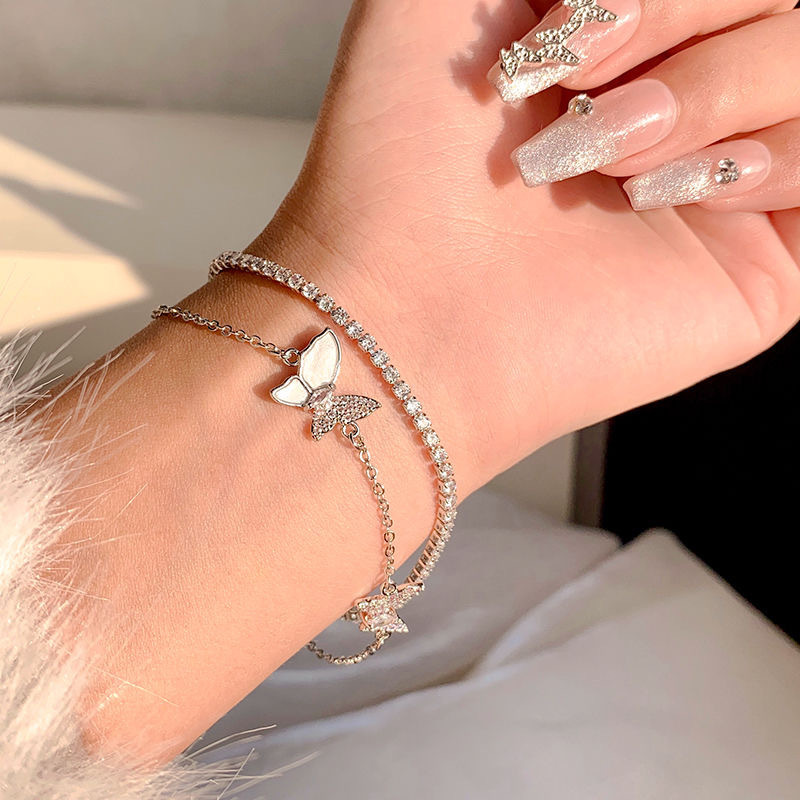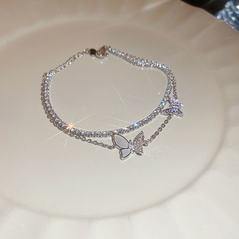 Be the first to review “Micro set cubic zirconia double layered butterfly bracelet”