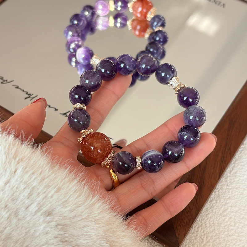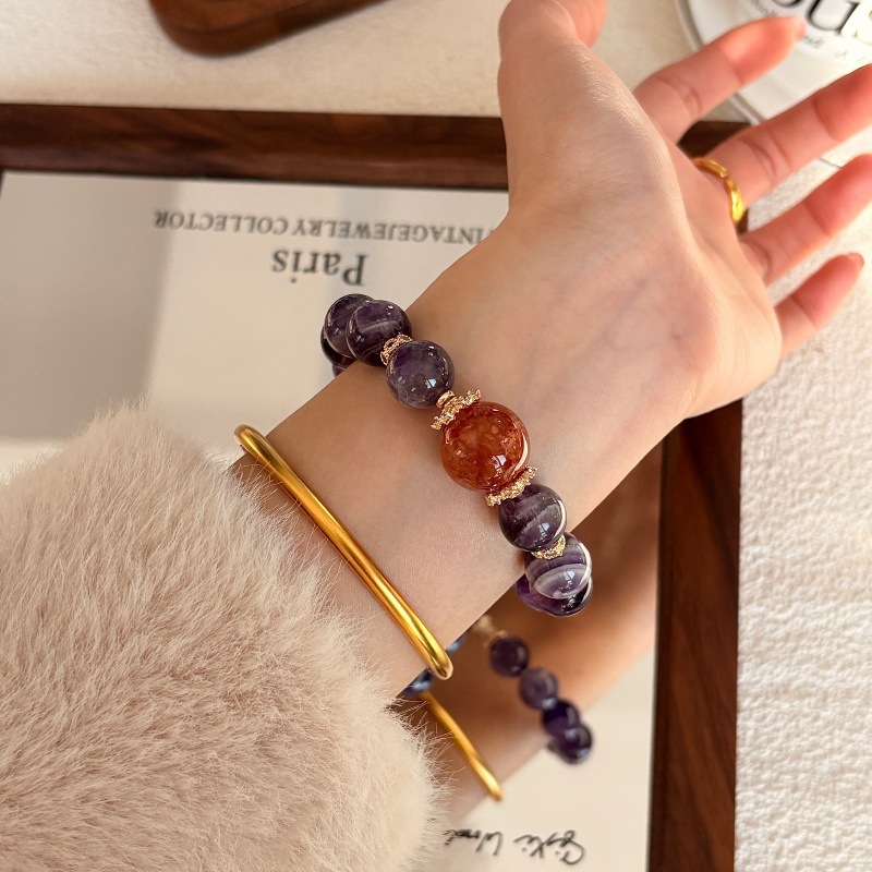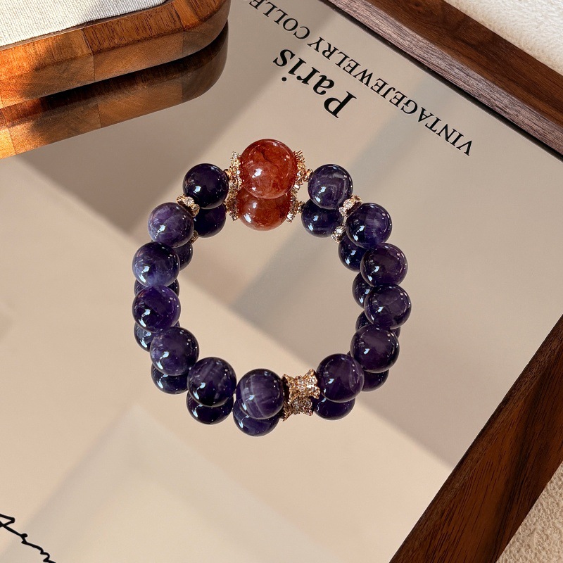 Natural Dreamy Amethyst Red Glue Flower Bracelet
