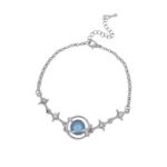 This “Stellar Orb Bracelet” traces to a 1920s astronomer’s apprentice, who crafted it to honor her mentor’s love for the night sky. The blue orb mimics Neptune—her mentor’s favorite planet, a symbol of quiet wonder—framed by a “celestial cage” to hold its magic. The star-shaped links represent distant constellations, a reminder that even small, glowing things (like dreams) are part of something vast. Worn now, it’s a token: carry a piece of the cosmos, and let curiosity light your way.