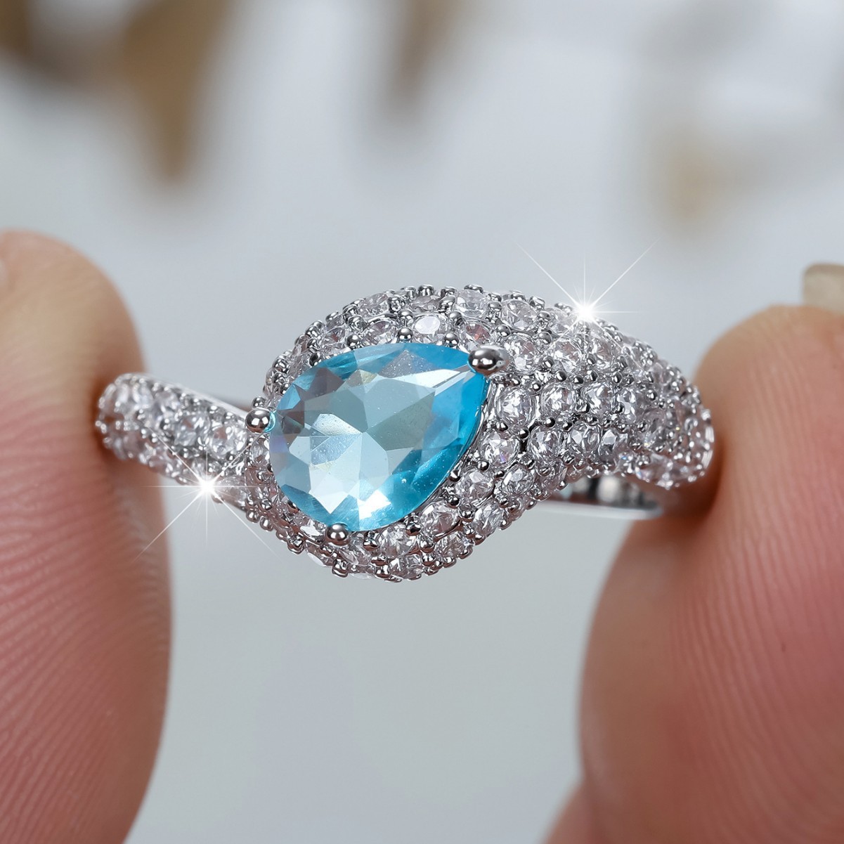 This viral “full-diamond teardrop aqua zircon ring” traces to 2018 Bali’s artisanal jewelry workshops: a designer crafted it for her surf-instructor friend, who wanted a piece that “captured the ocean’s sparkle.” The aqua zircon mimics a teardrop of tropical seawater, while the encrusted white diamonds echo sunlight glinting off waves—each detail a love letter to the sea.