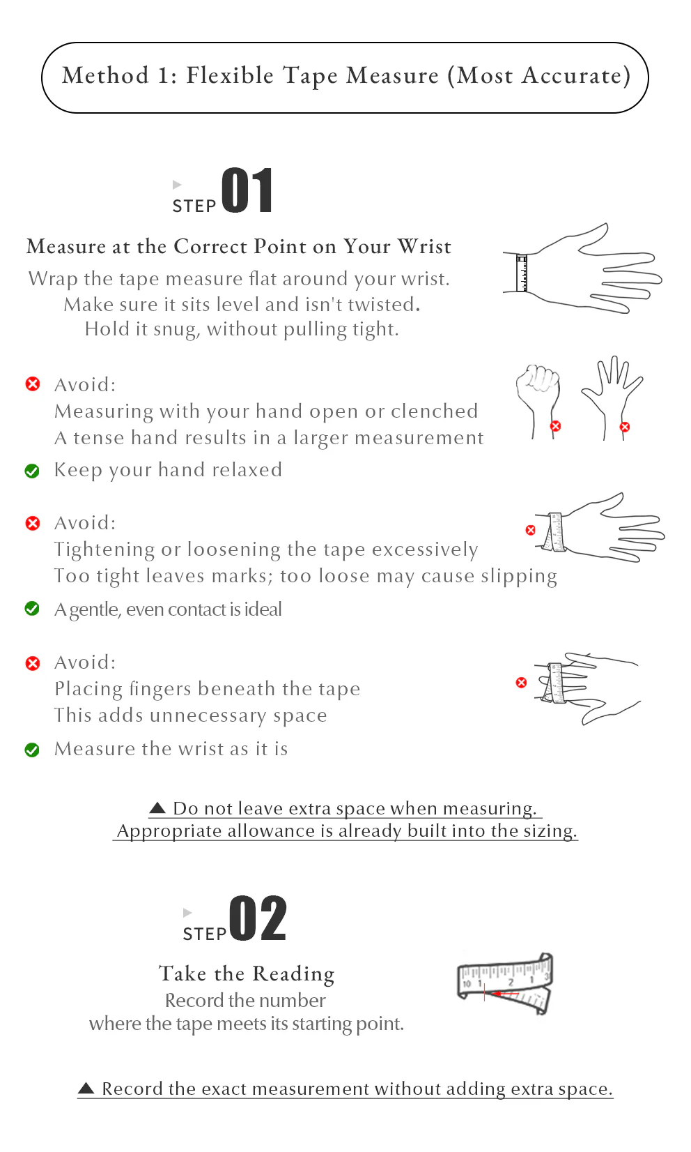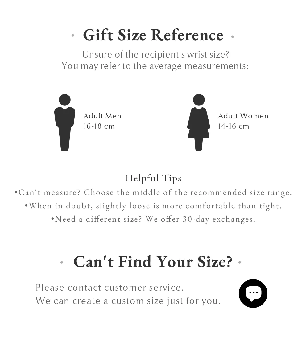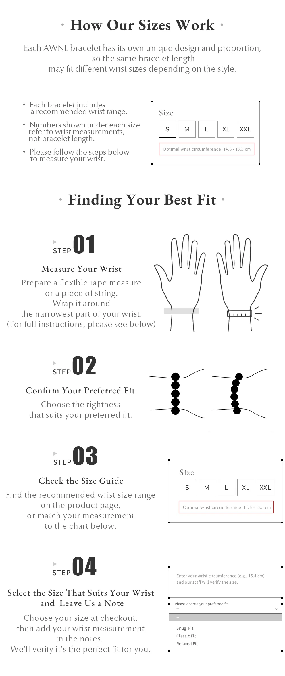 Sizing GuideOur non-adjustable bracelets maintain a fixed size. For all-day comfort, select a slightly looser fit. For a more tailored appearance, choose a closer fit.